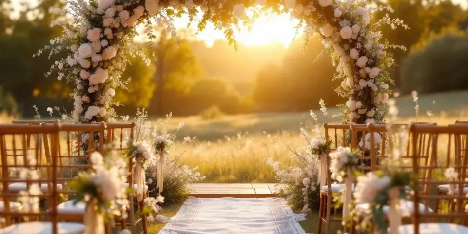 Intégrez rituels champêtres comme arches bois (300-700 €) ou fleurs sauvages (200-500 €) : cela booste l’émotion en ancrant le symbole dans la nature, variant les prix de 20-30 % (Romain Graille, 2025). Pourquoi ? Mécanique : matériaux locaux réduisent transport de 40 %, mais cueillette manuelle x2 le temps.